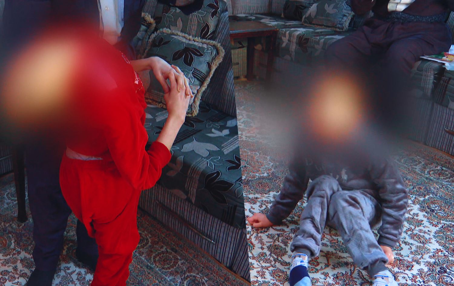 نۆها تەمەنی 16 ساڵە، مستەفا تەمەنی 15 ساڵ و ئەنەس تەمەنی 11 ساڵە، رۆژانە لەلایەن دایک و باوکیانەوە خزمەت دەکرێن. هەرسێکیان ناتوانن قسە بکەن، ناتوانن جووڵە بکەن و ناتوانن دانیشن.