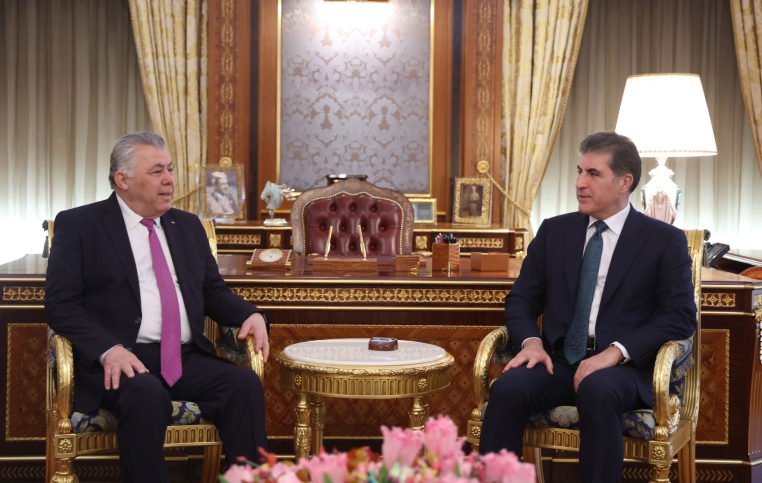 نێچيرڤان بارزانى، سهرۆكى ههرێمى كوردستان بەیانیی ئەمڕۆ پێشوازيى له باڵیۆز نهزمى حزوورى، كونسووڵى گشتيى فهلهستين له ههرێمى كوردستان كرد بەبۆنەی کۆتاییهاتنی ئەرکەکەی.