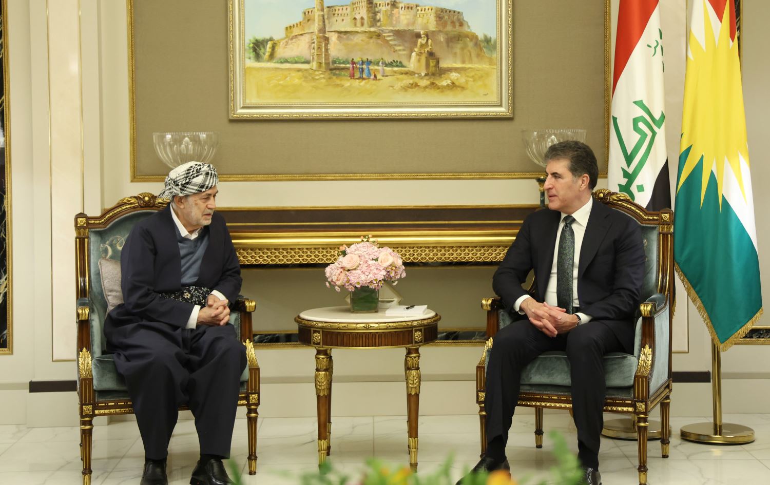 نێچیرڤان بارزانی و د. شێخ مادح شێخ عوسمان نەقشبەندیی بیارە. وێنە: سەرۆکایەتیی هەرێمی کوردستان