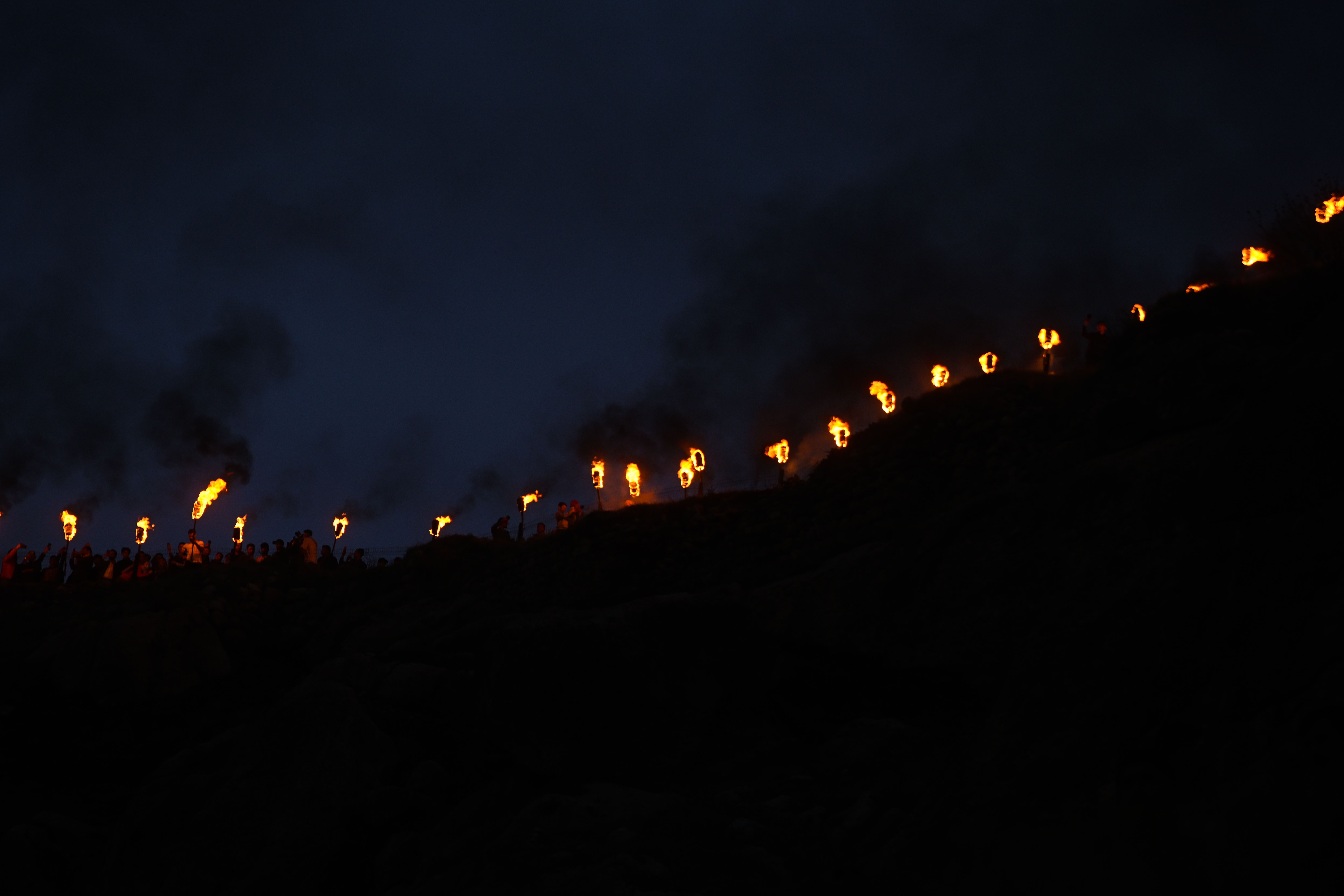 کۆمەڵێک خەڵک مەشخەڵیان بەدەستەوە گرتووە لە جەژنی نەورۆز لە ئاکرێ، وێنە: بڵند تاهیر - ئەرشیڤی رووداو