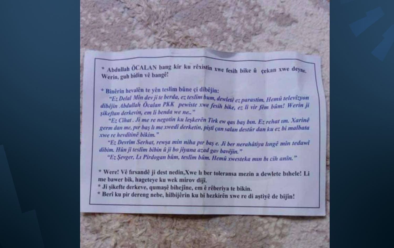 کامەران عوسمان، ئەندامی رێکخراوی (CPT)ـی ئەمریکی ئەمڕۆ شەممە، 19ـی نیسان، بە تۆڕی میدیایی رووداوی راگەیاند: "دوانیوەڕۆی دوێنێ، فڕۆکەکانی سوپای تورکیا بە درێژایی چیای ئاسۆس و لە دەوروبەری گوندەکانی گەڵاڵە، باساوێ، سەفرە و زەروون لە سنووری قەزای ماوەت لە پارێزگای سلێمانی، بڵاوکراوەی بە شێوەزاری کورمانجی فڕێداوەتە خوارەوە و داوای خۆبەدەستەوەدانی گەریلاکانی پەکەکەی کردووە."