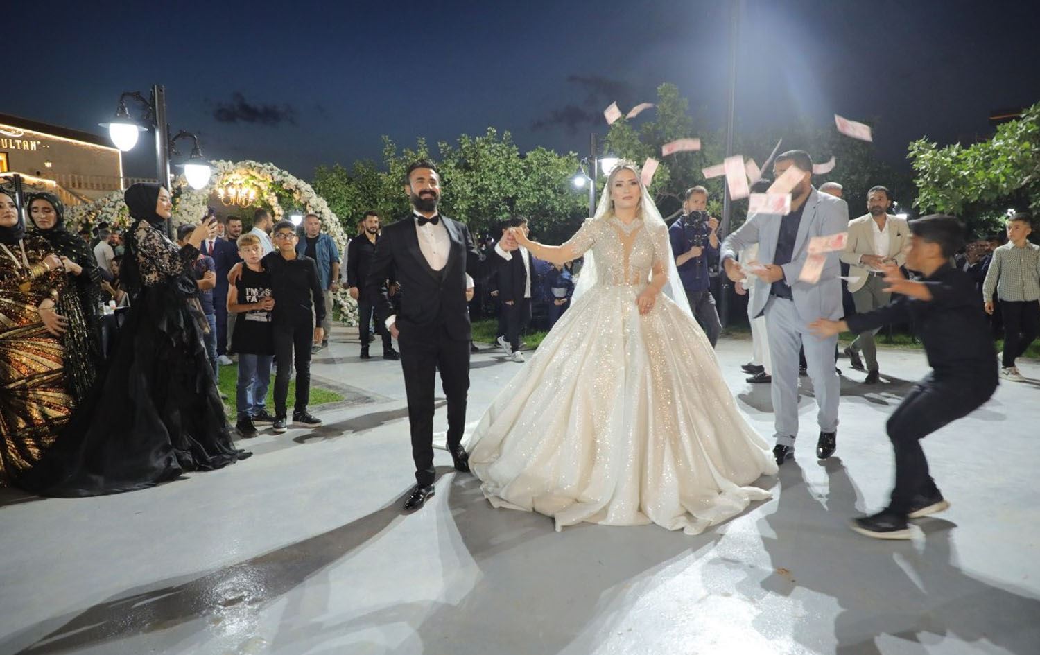 لەکاتی گەیشتنی بووک و زاوا، ئامادەبووان دۆلار و لیرەی تورکییان بەسەر بووک و زاوادا باراند. تیپی هونەری زووتر ئامادەکارییان کردبوو و 10 لە کارمەندانیان تەرخان کردبوو بۆ هەڵگرتنەوەی پارەکان؛ چونکە ئەو شوێنەی بووک و زاوا پێیدا تێدەپەڕین، بە پارە داپۆشرابوو.
