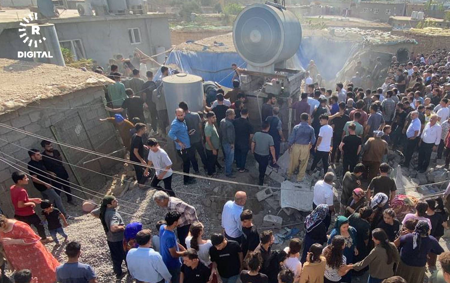 دوای بۆردوومانی فڕۆکەی تورکیا بۆ سەر کەمپی مەخموور لە 13ـی ئۆکتۆبەری 2023، دانیشتووانی کەمپەکە چوونەتە شوێنی بۆردوومانەکە