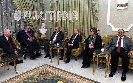 رۆژی پێنجشەممە 2014/12/18، مام جەلال لەشاری سلێمانی پێشوازی لە د.ئەیاد عەللاوی، جێگری سەرۆككۆماری عێراق و شاندێكی هاوڕێی كرد كە لە عەدنان جەنابی و مەیسون دەمەلوجی، ئەندامانی ئەنجوومەنی نوێنەرانی عێراق و شێخ حەسەن شوبرد، سەرۆكی لیژنەی پەیوەندییەكانی ئەنجوومەنی نوێنەران پێكهاتبوو.