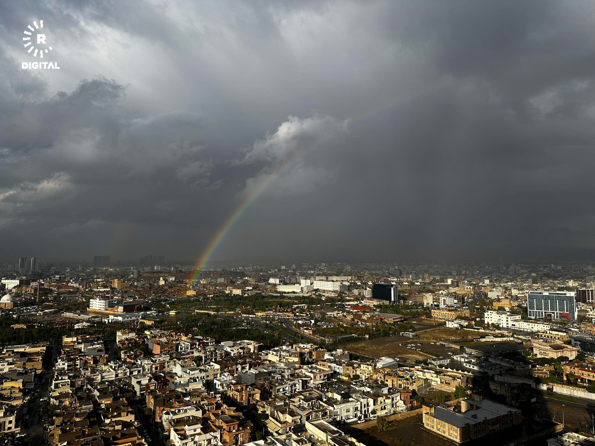 ئاسمانی ئەمڕۆی هەولێر و دروستبوونی پەلکەزێڕینە لەدوای باران، وێنە: دەنیز گیونەی تایبەت بە رووداو