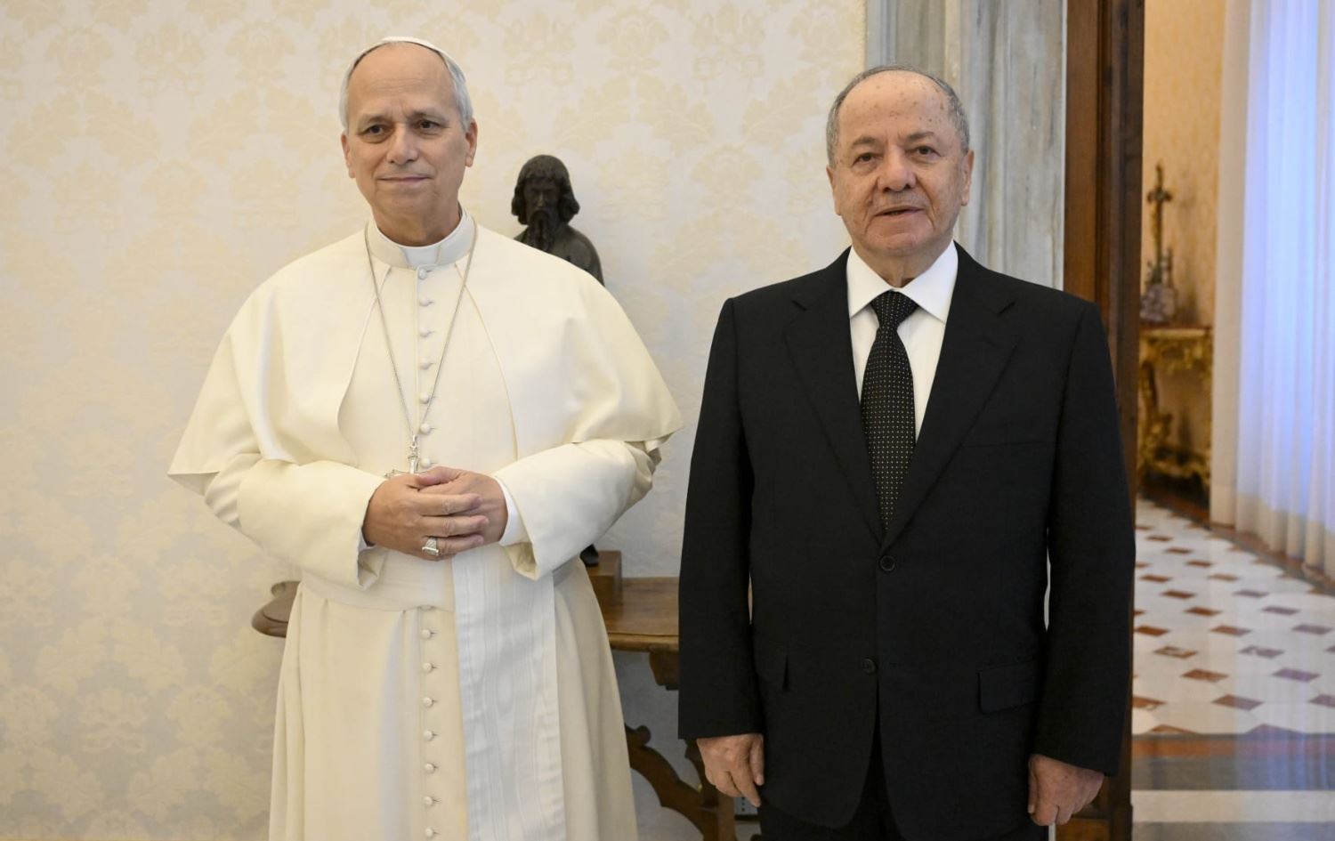 ئەمڕۆ چوارشەممە 21-01-2026 ئانۆ جەوهەر، وەزیری گواستنەوە و گەیاندنی حکومەتی هەرێمی کوردستان کە یاوەریی سەرۆک بارزانیی دەکات بۆ ڤاتیکان، بە تۆڕی میدیایی رووداوی گوت، "لەسەر بانگهێشتی قەداسەتی پاپا، ئەمڕۆ سەرۆک بارزانی لە ڤاتیکان دەبێت و لەگەڵ لویسی چواردەیەم، پاپای ڤاتیکان و دواتریش لەگەڵ پيترۆ پارۆلين، سهرۆكوهزيرانى ڤاتيكان کۆدەبێتەوە."