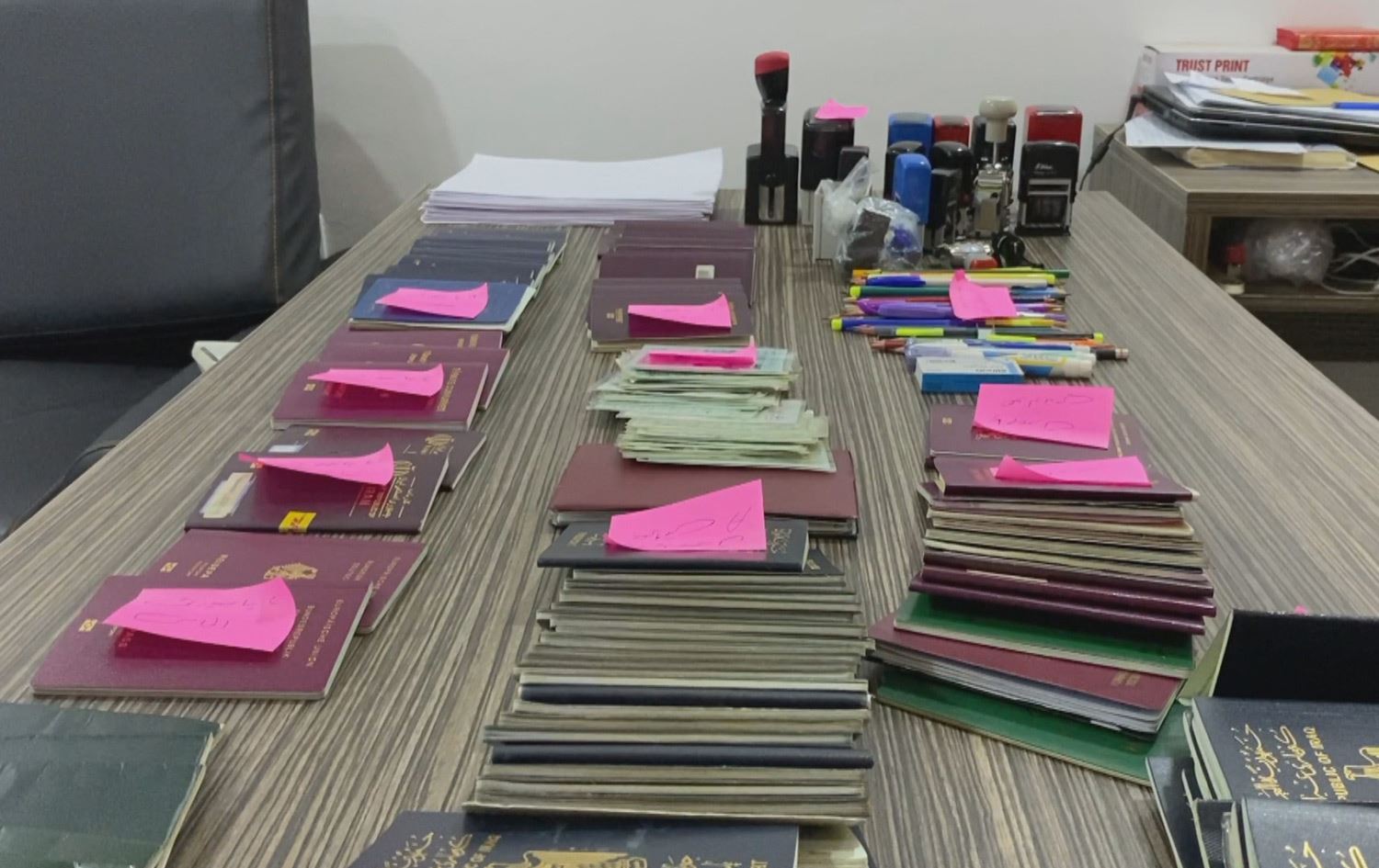ئەو پاسپۆرتانەی ساختەیان کردوون، هی چەندین وڵاتی تێدایە، وەکو ئەڵمانیا، فەرەنسا، رووسیا، تورکیا، سووریا، عێراق و ئێران. هەروەها چەندین ناسنامە و وەڵاتینامە و مۆر و ڤیزەش لەنێو جانتایەکدا لە ماڵی زاواکە لەلایەن ئاسایشی ئیبراهیم خەلیلەوە دەستیان بەسەردا گیراوە و کەیسەکە رادەستی پۆلیسی زاخۆ کراوە.