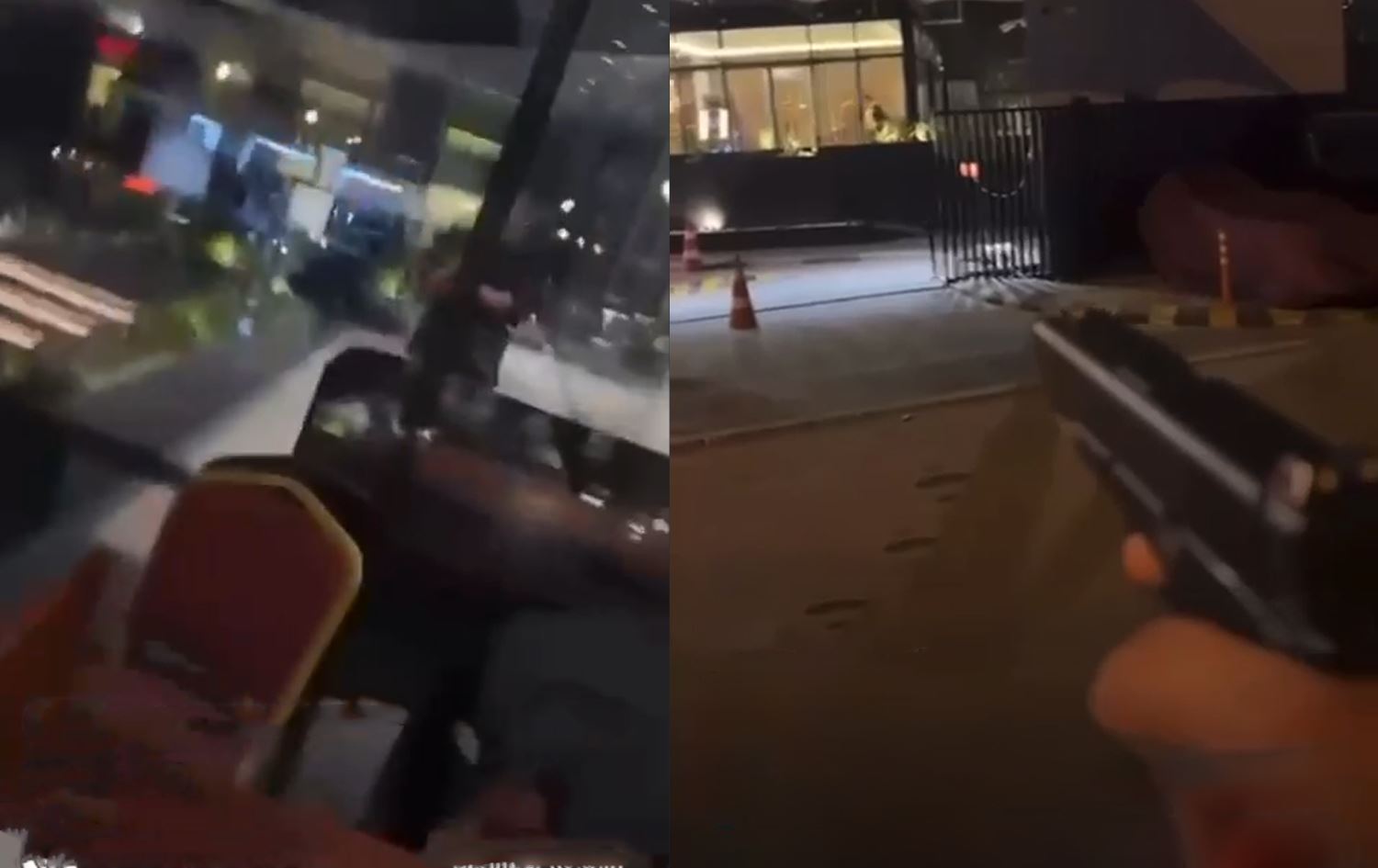 وەک لە گرتەیەکی ڤیدیۆییدا کە دەست رووداو کەوتووە، دەردەکەوێت کەسێک لەبەردەم هۆتێلەکە بە دەمانچە تەقە دەکات، داوا لە پاسەوانی هۆتێلەکە دەکات کە بڕوات.
