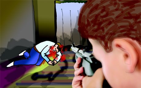 پێدەچێ (م) ئەو زللەیەی باوكی پێ قبووڵ نەكرابێ، بۆیە كاتێك باوكی دەخەوێ، ئیدی ئەو كاری خۆی دەكات. ئەردەلان گوتی "كاتێك دایك و باوكی خەوتوون، (م) چەكی باوكی دەرهێناوە و دەستڕێژی گوللەی لە باوكی كردووە و 10 فیشەكی پێوەناوە و كوشتوویەتی، كاتێك دایكی ویستوویەتی رێگری لێ بكات، تەقەی لەویش كردووە و برینداری كردووە. دواتر هەڵاتووە.