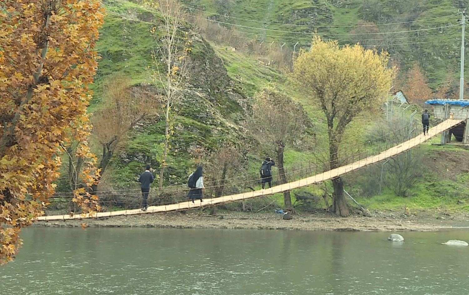 قوتابیانی گوندەکە بە ناچاری بەسەر پردێکی مەترسیدار رۆژانە هاتووچۆ دەکەن.