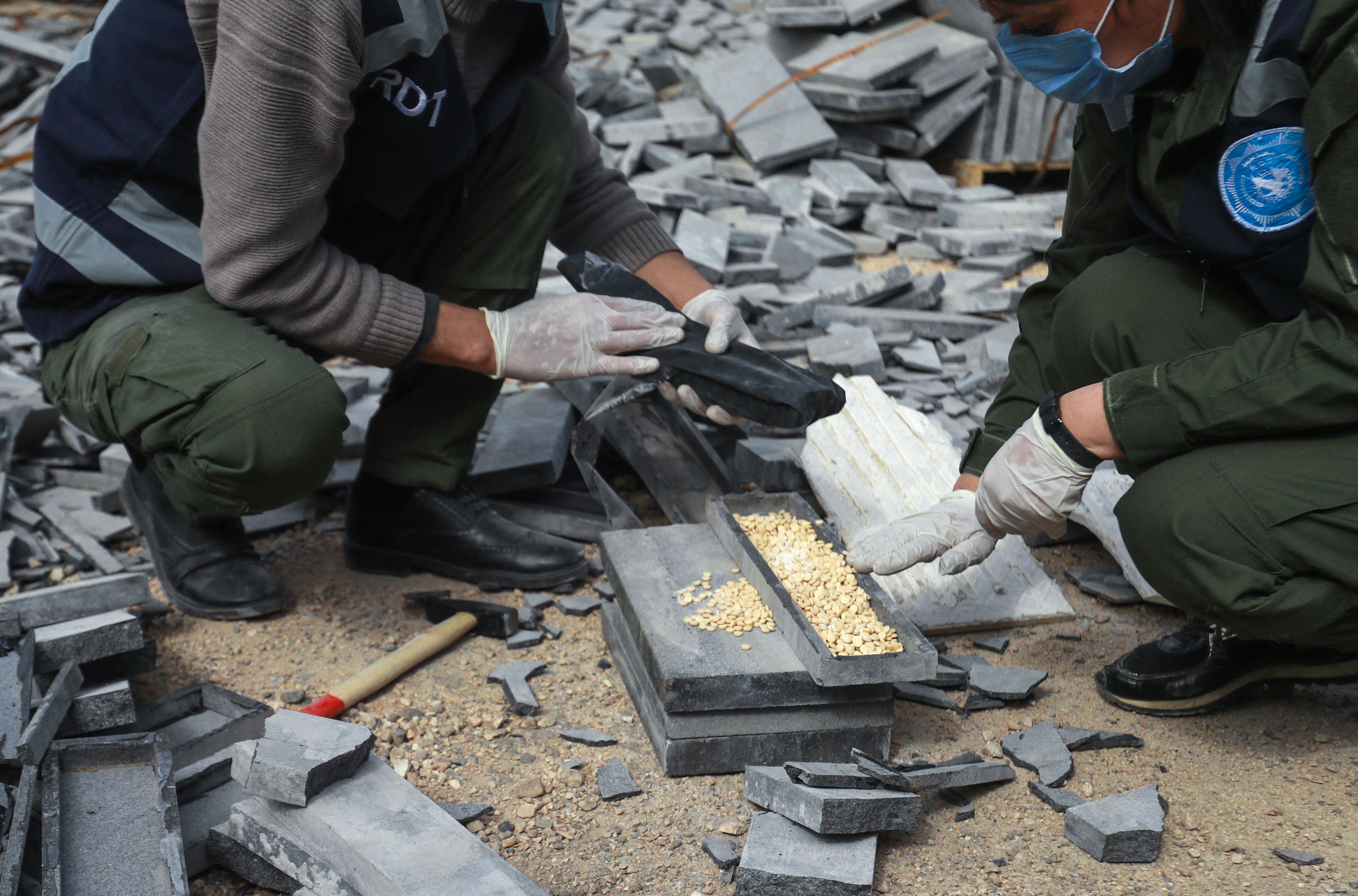 بەرپرسانی بەڕێوەبەرایەتیی خۆسەر لە کۆنفرانسێکی رۆژنامەڤانیدا باسیان لەوە کرد، حەبەکان بە شارەزاییەوە لەنێو کەرەستەی بیناسازیی وەکو گرانیت و سرامیکدا شاردرابوونەوە.