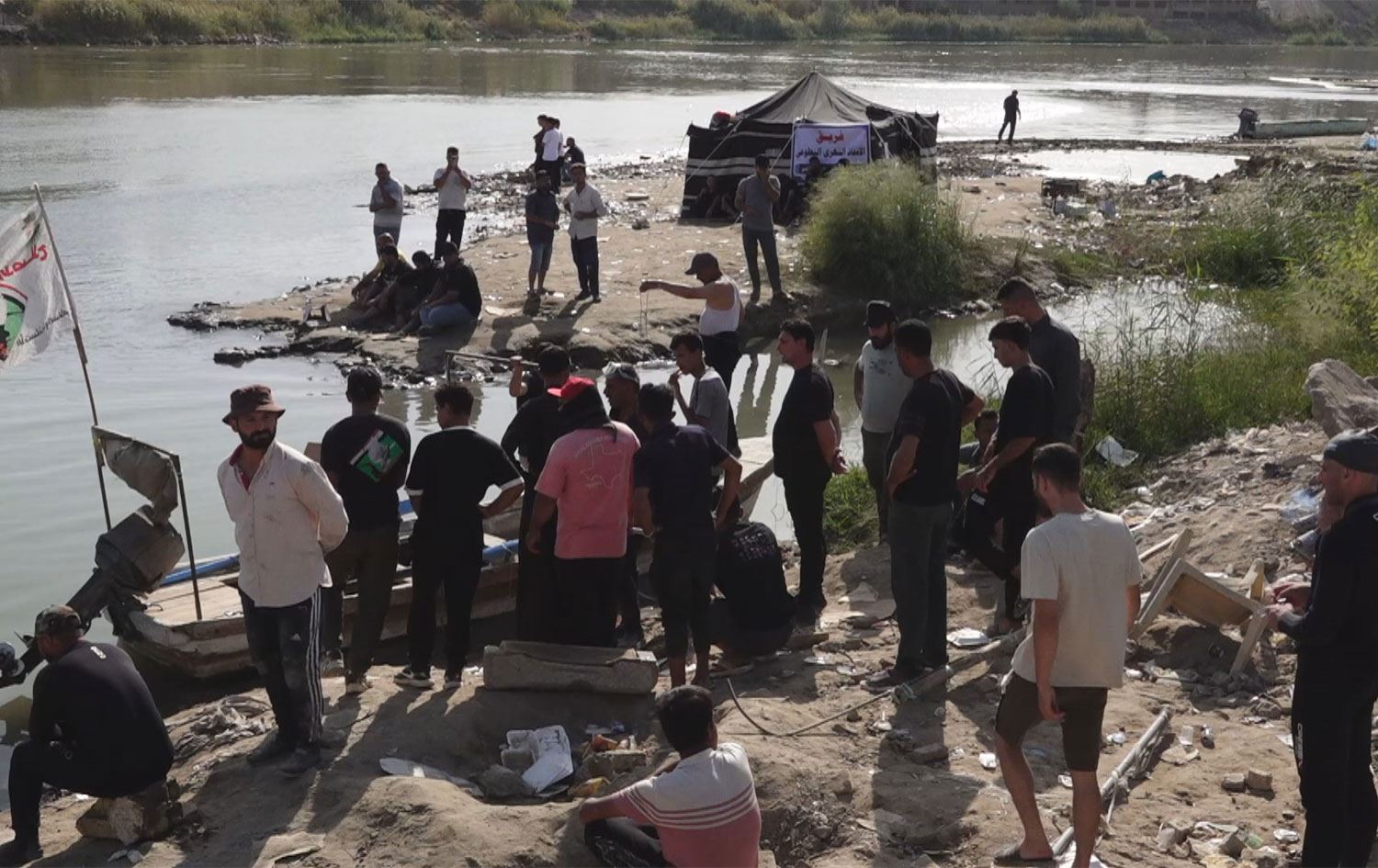 کەسوکاری حوسێن باسم، گەنجە خنکاوەکە، خێوەتی پرسەیان لەنزیک شوێنی رووداوەکە هەڵداوە و چاوەڕێی دۆزینەوەی تەرمەکەی دەکەن.