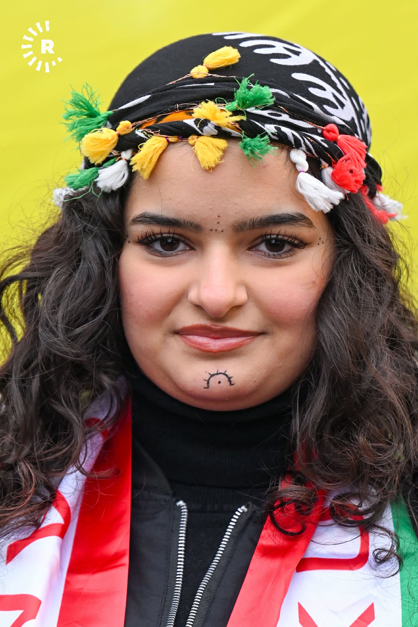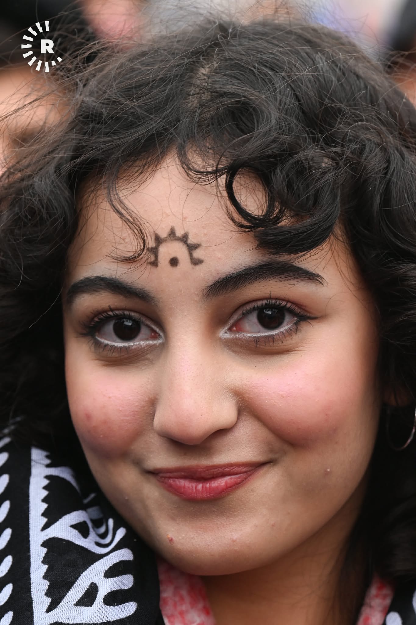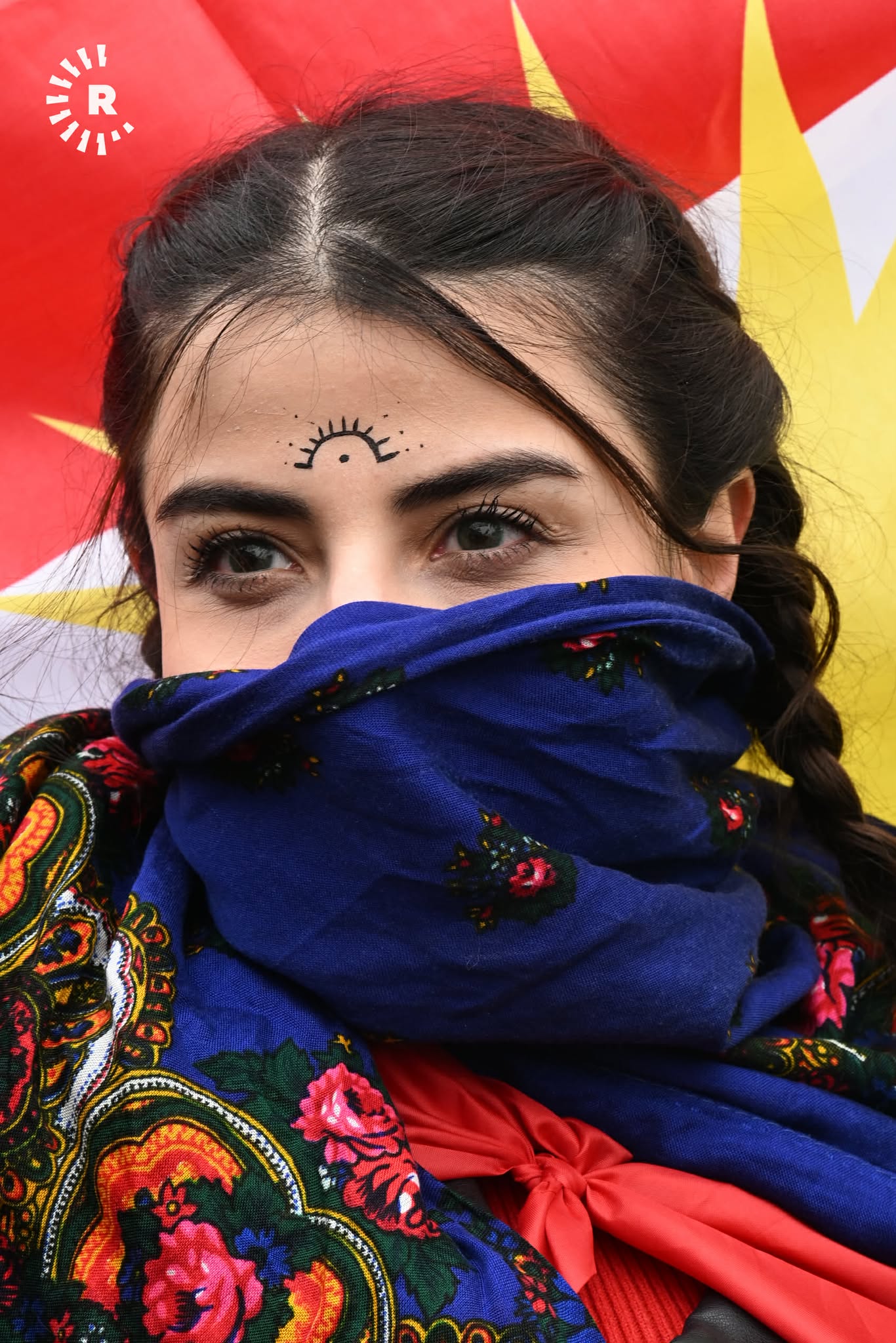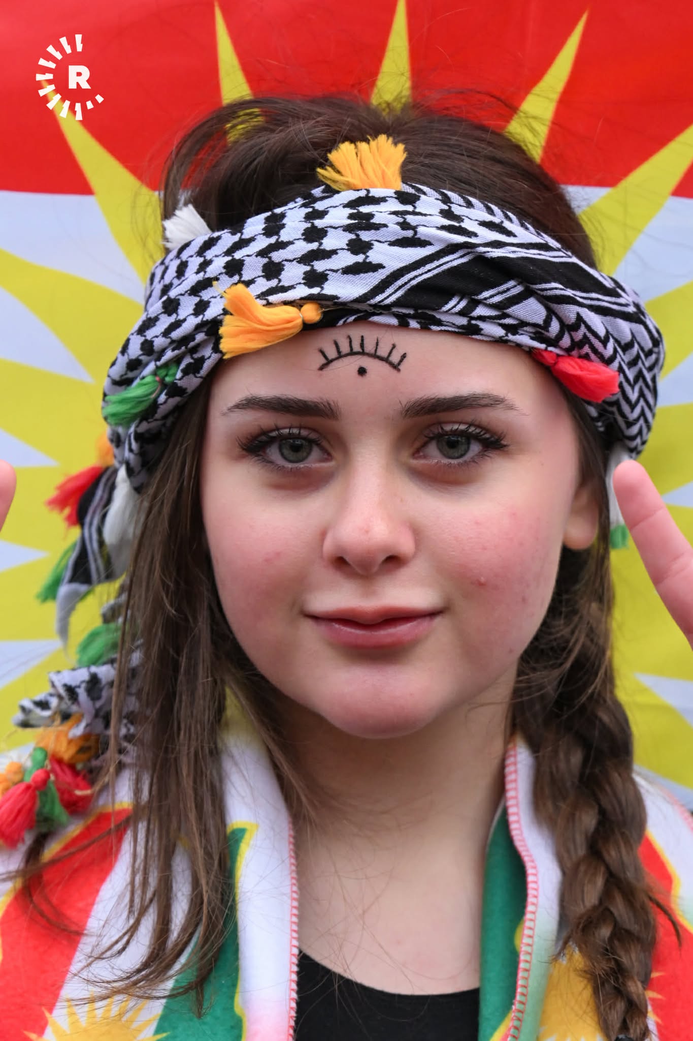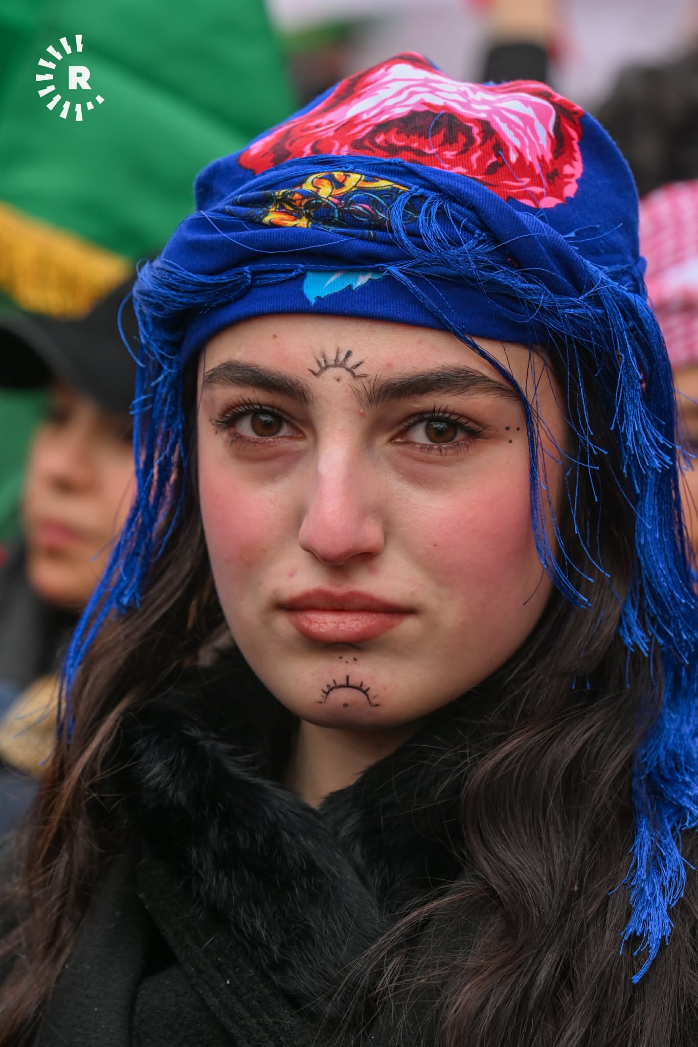 بەشێک لە ژنان و کچانی هەولێر لە خۆپێشاندانەکەدا هێمای خۆر، ئازادی، سەرکەوتن، هێز و مەزاری شەهیدانیان لەسەر رووخساریان کێشا و لەبەردەم قەڵا خۆپێشاندانیان بۆ پاڵپشتیی هاونیشتمانییانی رۆژئاوای کوردستان کرد.