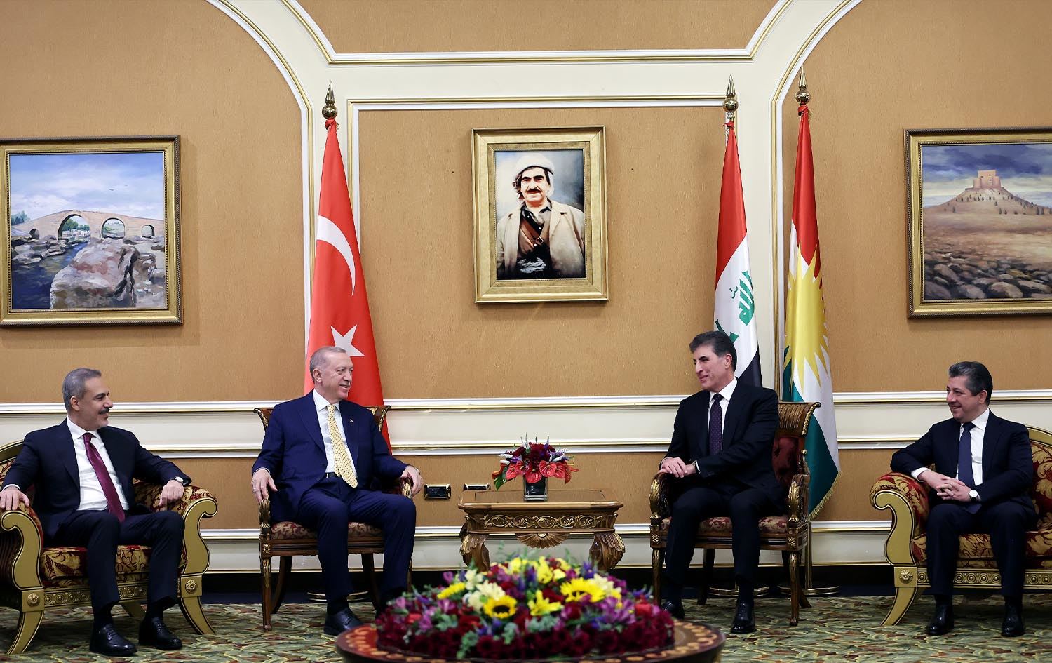 کۆبوونەوەی نێچیرڤان بارزانی، سەرۆکی هەرێمی کوردستان و مەسرور بارزانی، سەرۆکوەزیران لەگەڵ رەجەب تەیب ئەردۆغان، سەرۆککۆماری تورکیا و هاکان فیدان، وەزیری دەرەوەی تورکیا