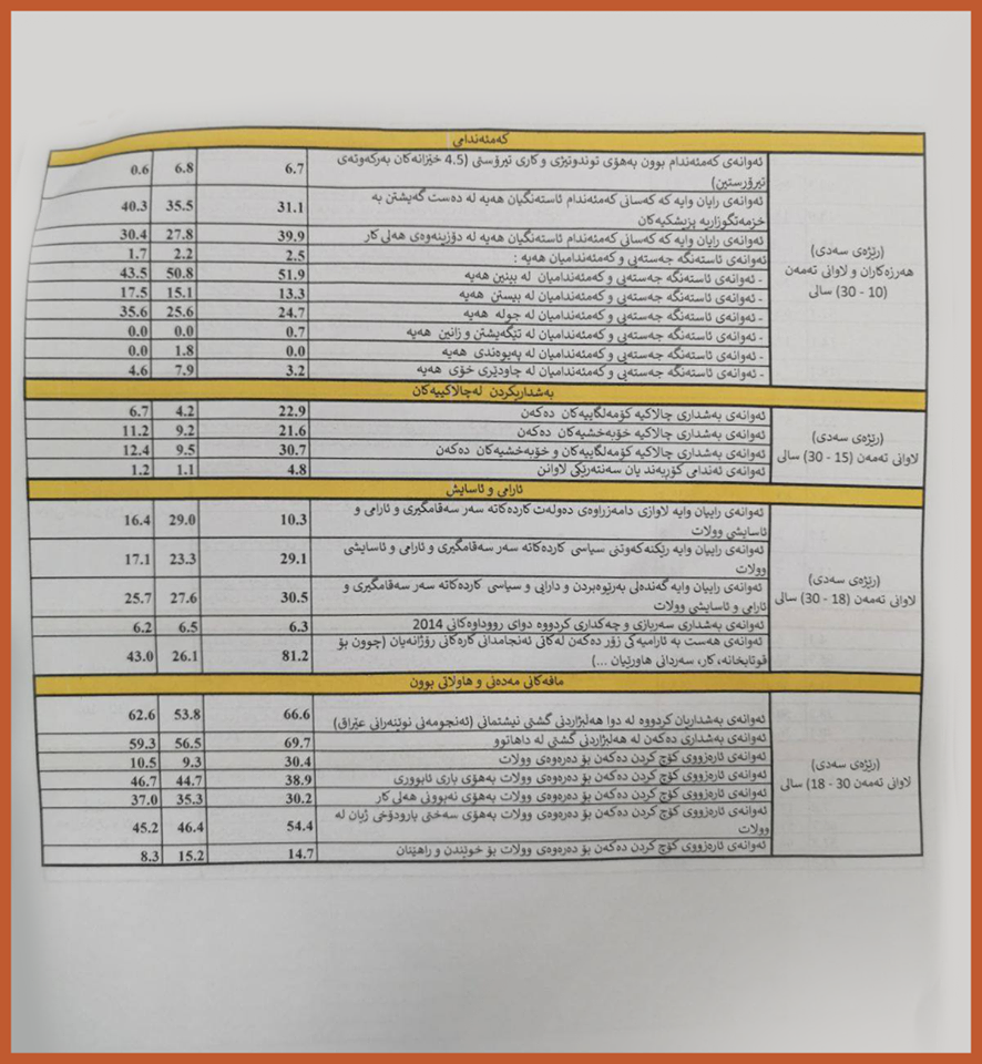 بەشێک لە ئەنجامەکانی رووپێوییەکە: