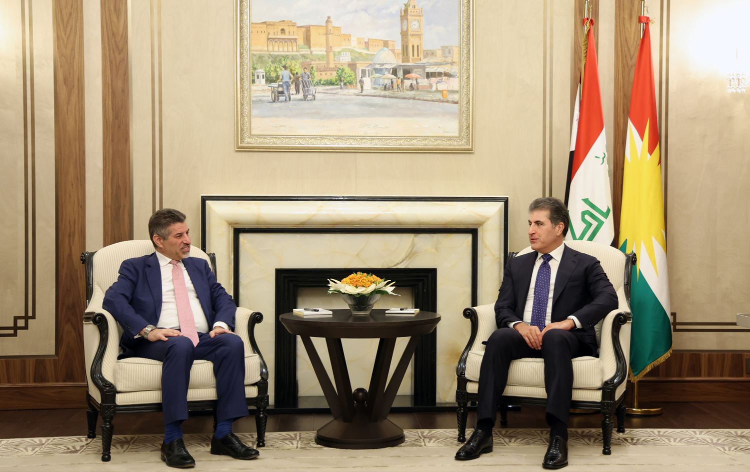 ئێوارەی ئەمڕۆ شەممە، 23-08-2025، نێچیرڤان بارزانی، سەرۆکی هەرێمی کوردستان لە هەولێر پێشوازی لە ستیڤن ڤەیگن، هەڵسووڕێنەری کاروباری باڵیۆزخانەی ئەمریکا لە عێراق کرد و پرسی مووچە و پەیوەندییەکانی نێوان هەولێر و بەغدایان تاوتوێ کرد.