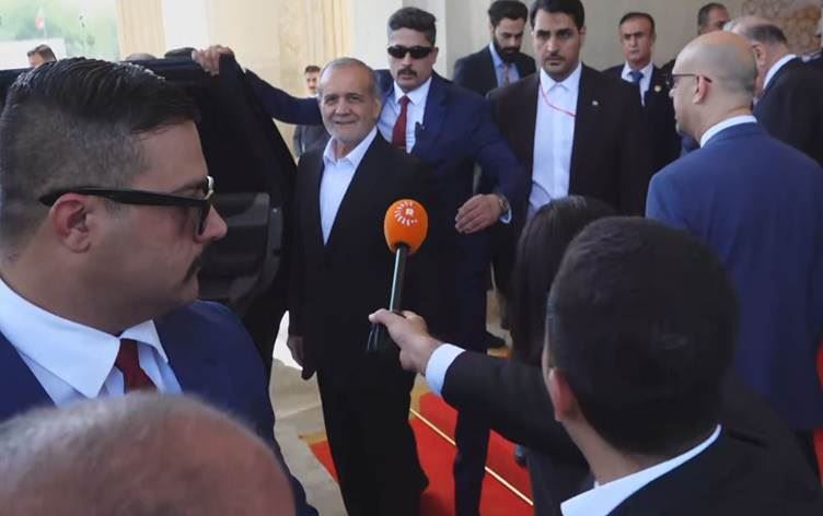 مەسعود پزیشکیان، سەرۆککۆماری ئێران رۆژی 11-9-2024 بە سەردانێک گەیشتە بەغدا و لەوێ بە کوردی وەڵامی پرسیارەکانی هەڵکەوت عەزیز، پەیامنێری تۆڕی میدیایی رووداوی دایەوە.