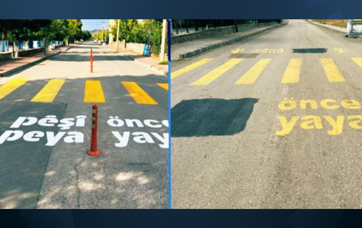 لە شەقامەکاندا لە تەنیشت زمانی تورکی، بە زمانی کوردیش نووسینەکانی وەکو (پێشتر پیادە) و (لەسەرخۆ بە) وەکو رێنوێنی نووسراوە.