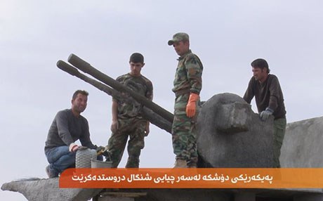 بۆ رێزگرتن لە فەرماندەیەکی پێشمەرگە بەناوی سەیدا قاسم، ژمارەیەک هاونیشتمانی پەیکەرێک لە چەکی جۆری دۆشکە لەسەر لۆفە (پێچ)ەكانی چیای شنگال دروستدەکەن.