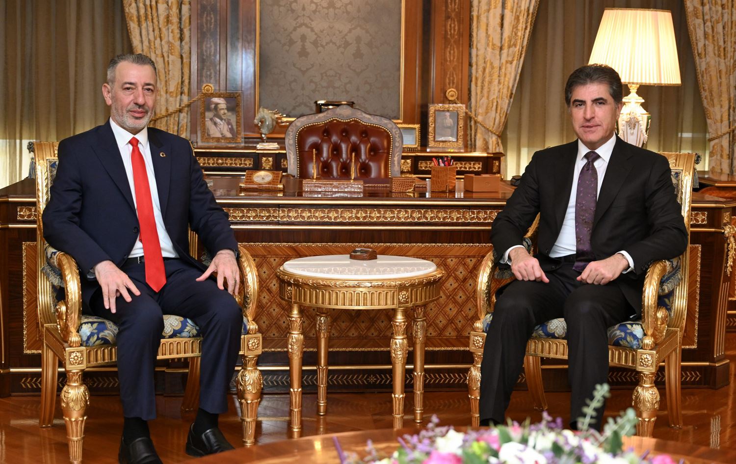 نێچيرڤان بارزانى، سهرۆكى ههرێمى كوردستان و ئايدن مهعرووف، وهزيرى كاروبارى پێكهاتهكان له حكومهتى ههرێمى كوردستان.