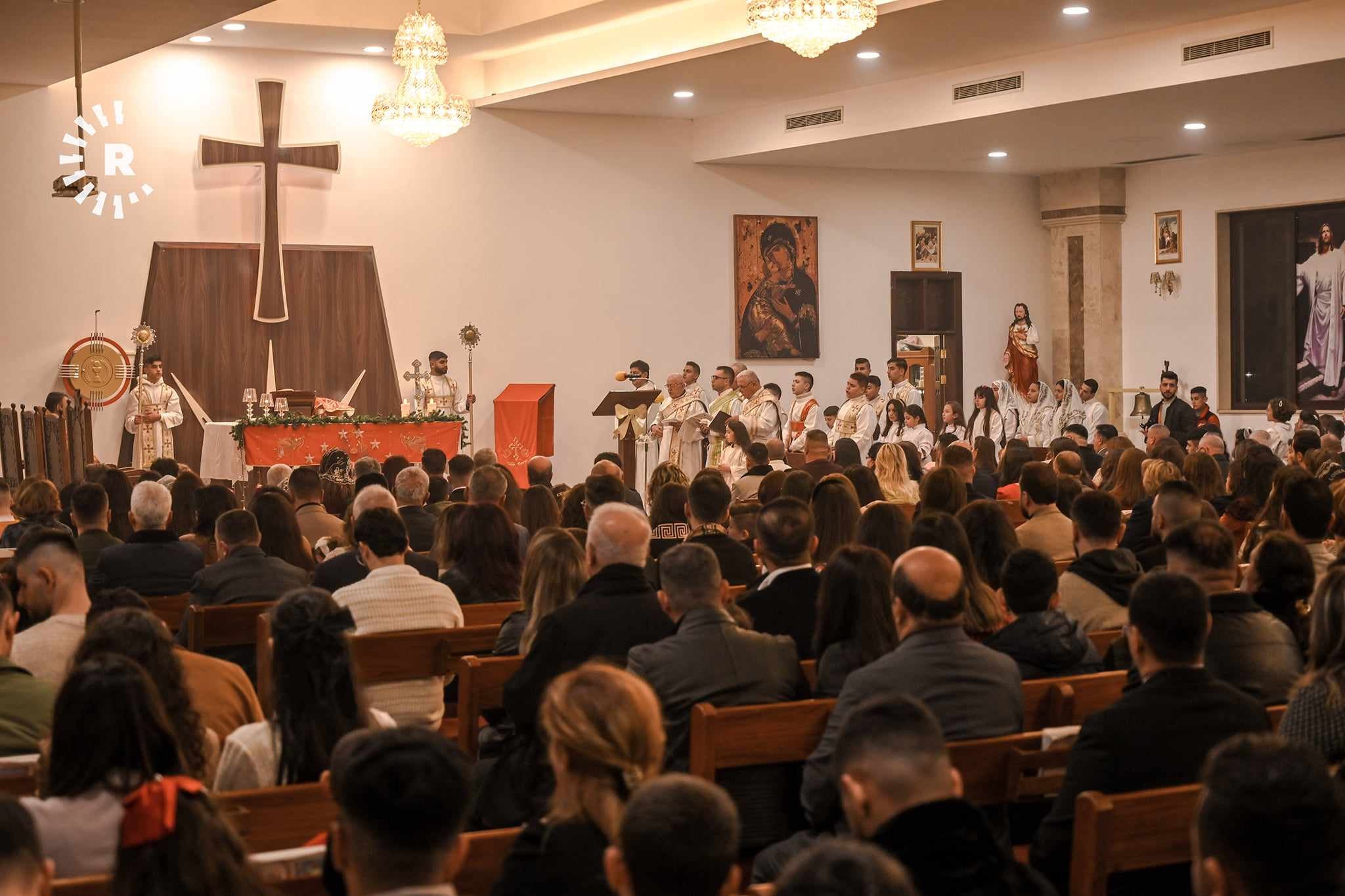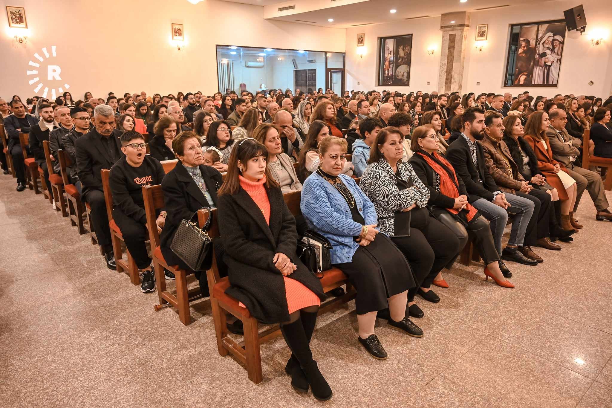 بەشێکی کریستیانەکانی عەنکاوەی هەولێر روویان لە کەنیسەی 'سوڵتانە سەلام'ـی سریانی - کاسۆلیکی کردووە و نوێژ و نزا دەخوێنن.