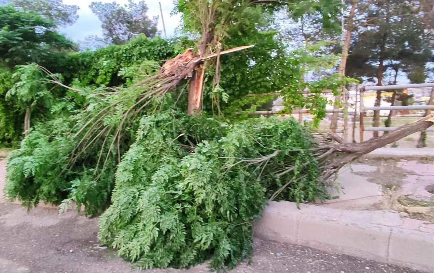 بەگوێرەی ئەو وێنانەی لە تۆڕە کۆمەڵایەتییەکان بڵاوکراونەتەوە، بەهۆی رەشەباکەوە ژمارەیەک دار و درەخت شکاون و کەوتوون.