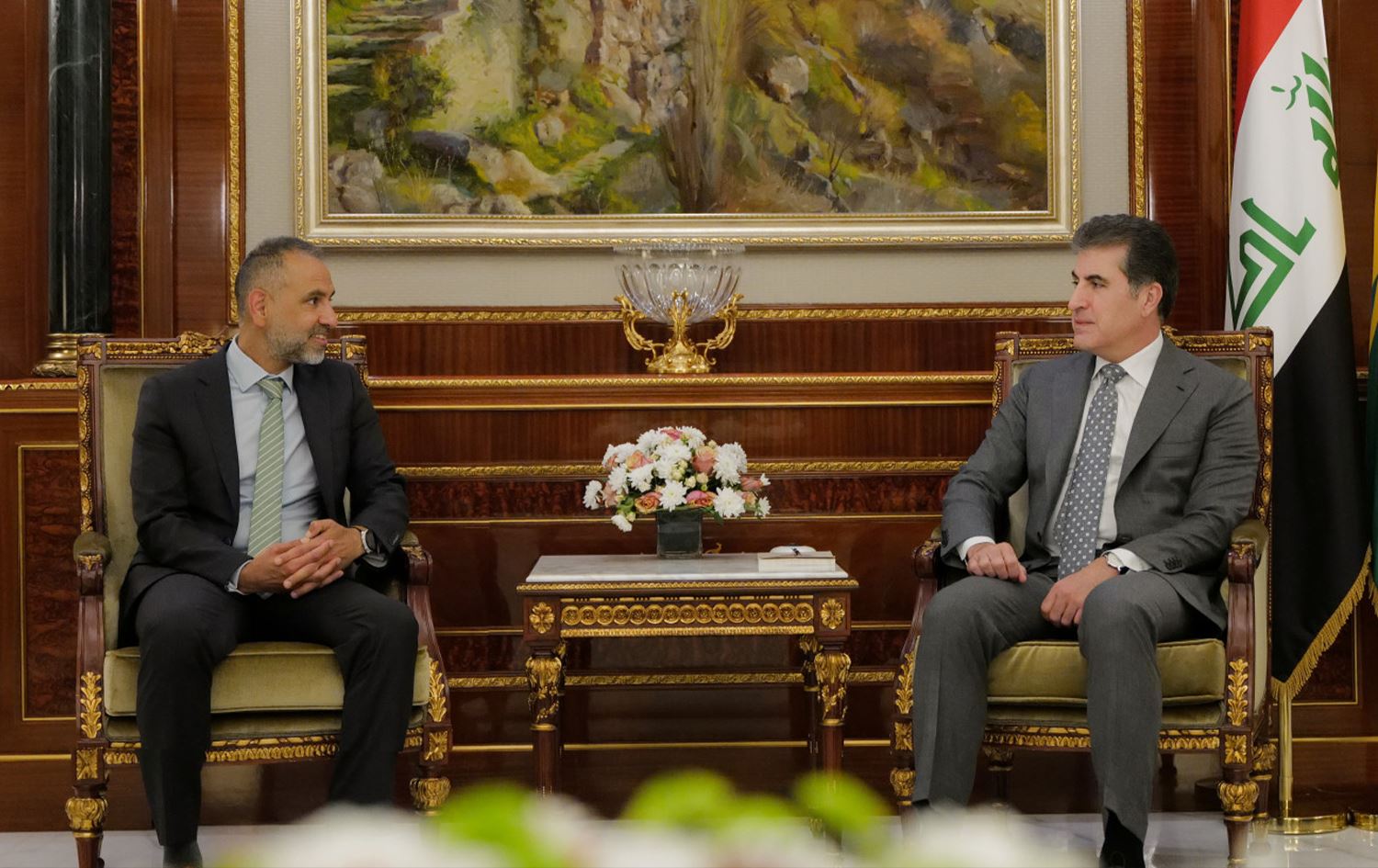 نيوهڕۆى ئهمڕۆ چوارشهممه، 2025/6/25، بهڕێز نێچيرڤان بارزانى، سهرۆكى ههرێمى كوردستان، پێشوازیی له بهڕێز ئيرفان سديق، باڵيۆزى بهريتانيا له عێراق كرد.