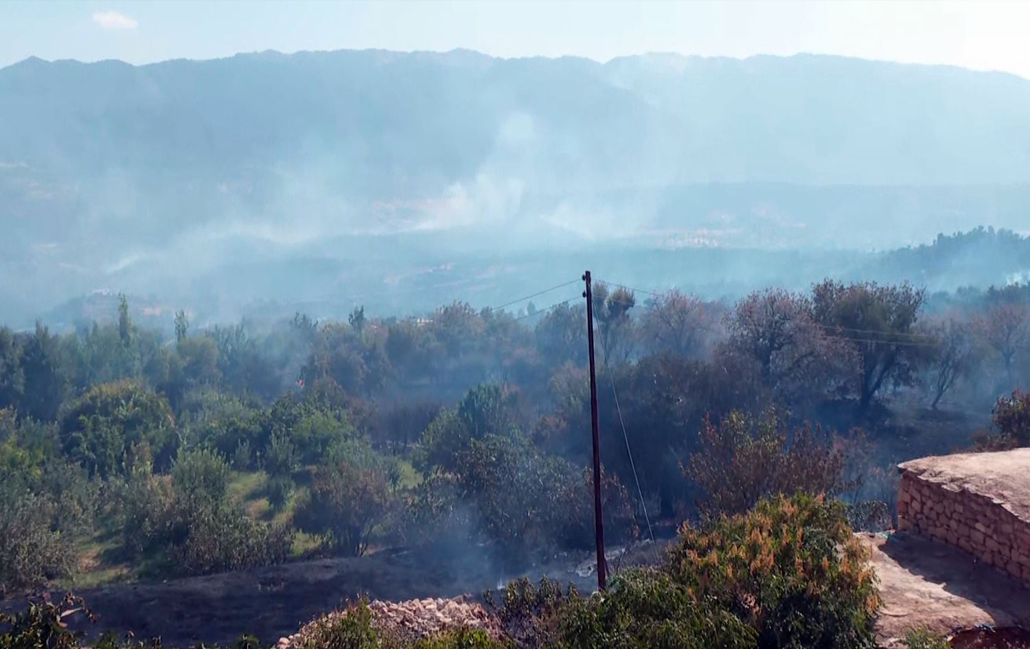 ئەو هاونیشتمانییە ئاماژەی بەوە کرد، ئاگرەکە گەیشتووەتەوە نێو گوند، "بەڵام هیچ زیانێکی گیانی لێنەکەوتووەتەوە، گۆڕستانی گوندەکە سووتاوە، بەڵام خانووەکان نەسووتاون.''