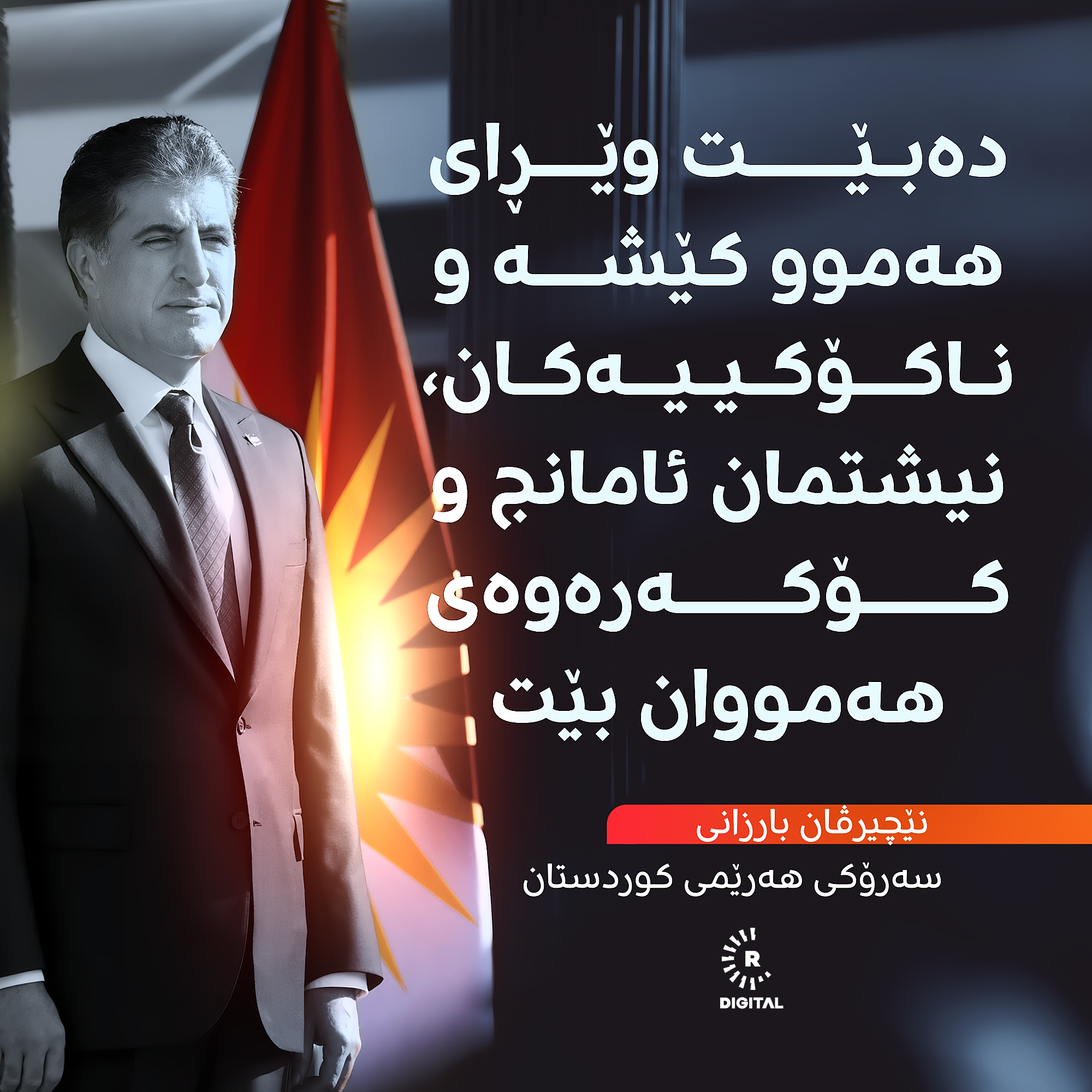 ههرێمى كوردستان و مافه دهستوورييهكانى، بهرههمى گيانى پاك و خوێنى ههزاران شههيد و فرمێسكى ههزاران دايكى جگهرسووتاو و ئهنفال و كيمياباران و خهبات و قوربانيدانى كوردستانييانه، بۆيه ئهركى ههموومانه به ههموو شێوهيهك پارێزگارى و بهرگرى لێ بكهين. دهبێت وێڕاى ههموو كێشه و ناكۆكييهكان، نيشتمان ئامانج و كۆكهرهوهى ههمووان بێت.