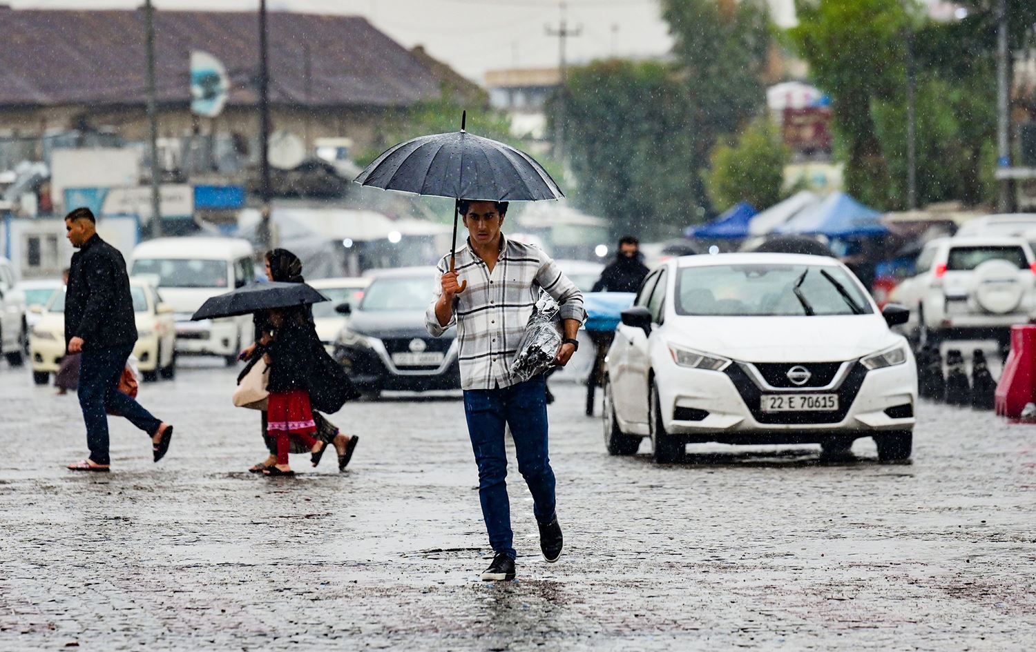 کوڕێکی گەنج لە کەشێکی باراناویی هەرێمی کوردستاندا چەتری بەدەستەوە گرتووە. وێنە: بڵند تاهیر - رووداو