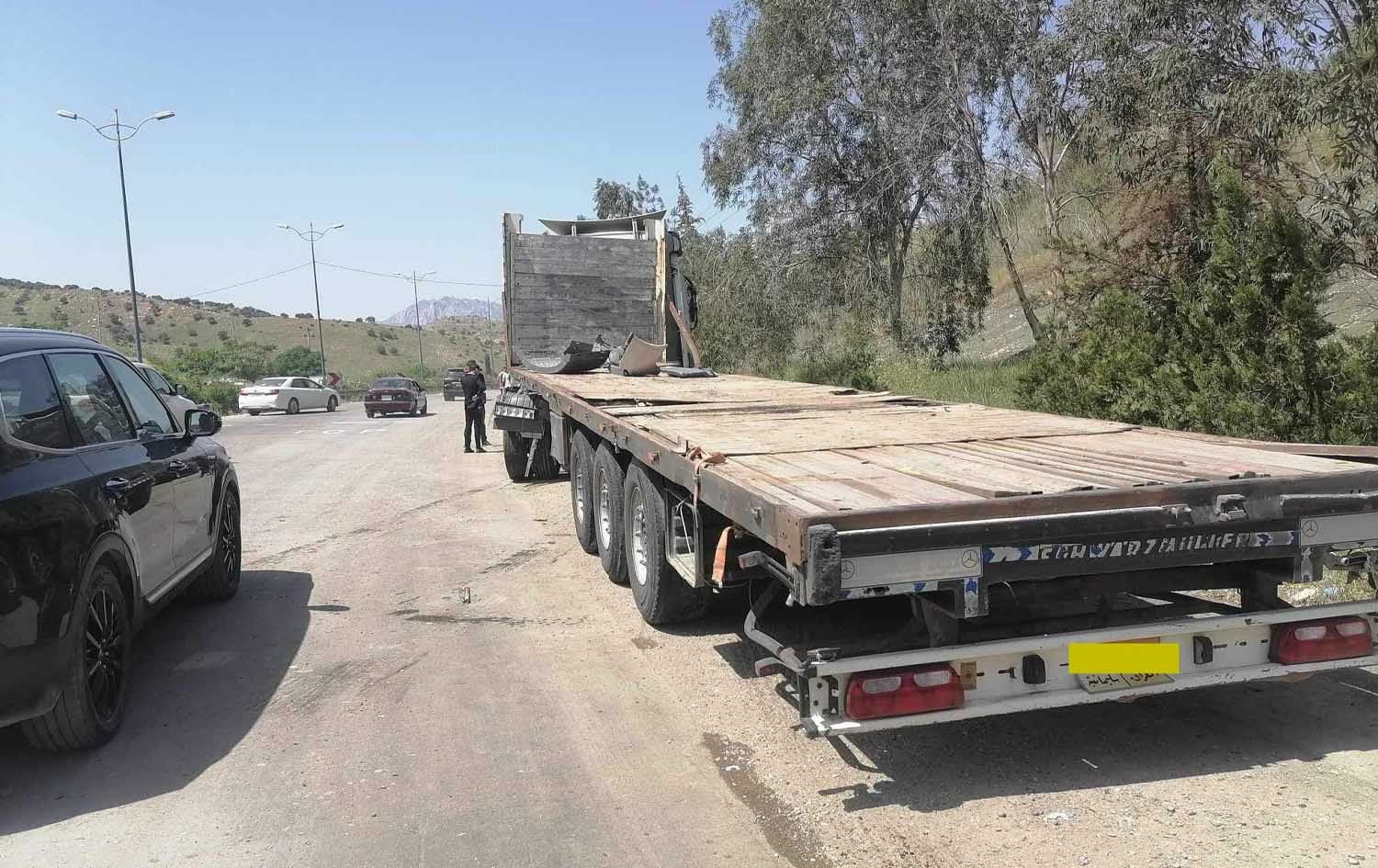 ئەو بارهەڵگرەی ئەمڕۆ لە رێگەی دووکان - سلێمانی کۆنترۆڵی لەدەستدا و لە ژمارەیەک ئۆتۆمبێلی دا. وێنە: پەیجی هاتووچۆی سلێمانی