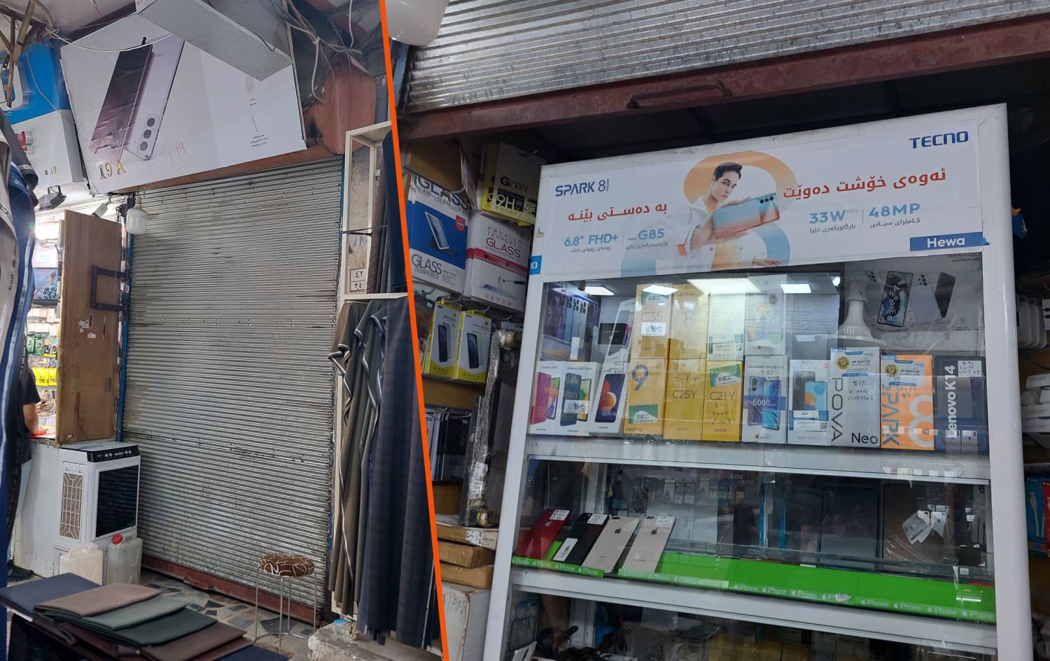 بەشێكی زۆری دووكانەكانی شەقامی مەولەوی لە شاری سلێمانی كاری فرۆشتنی مۆبایل دەكەن.