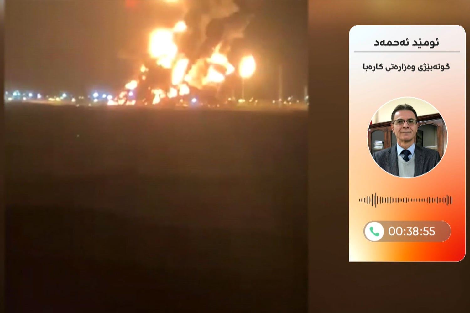 ئومێد ئەحمەد، کە هاوکات بەڕێوەبەری گشتیی کۆنترۆڵی کارەبای هەرێمی کوردستانە ئاماژەی بەوەشکرد، تیمەکانی فریاگوزاری سەرقاڵی کوژاندنەوەی ئاگری کێڵگەکەن.