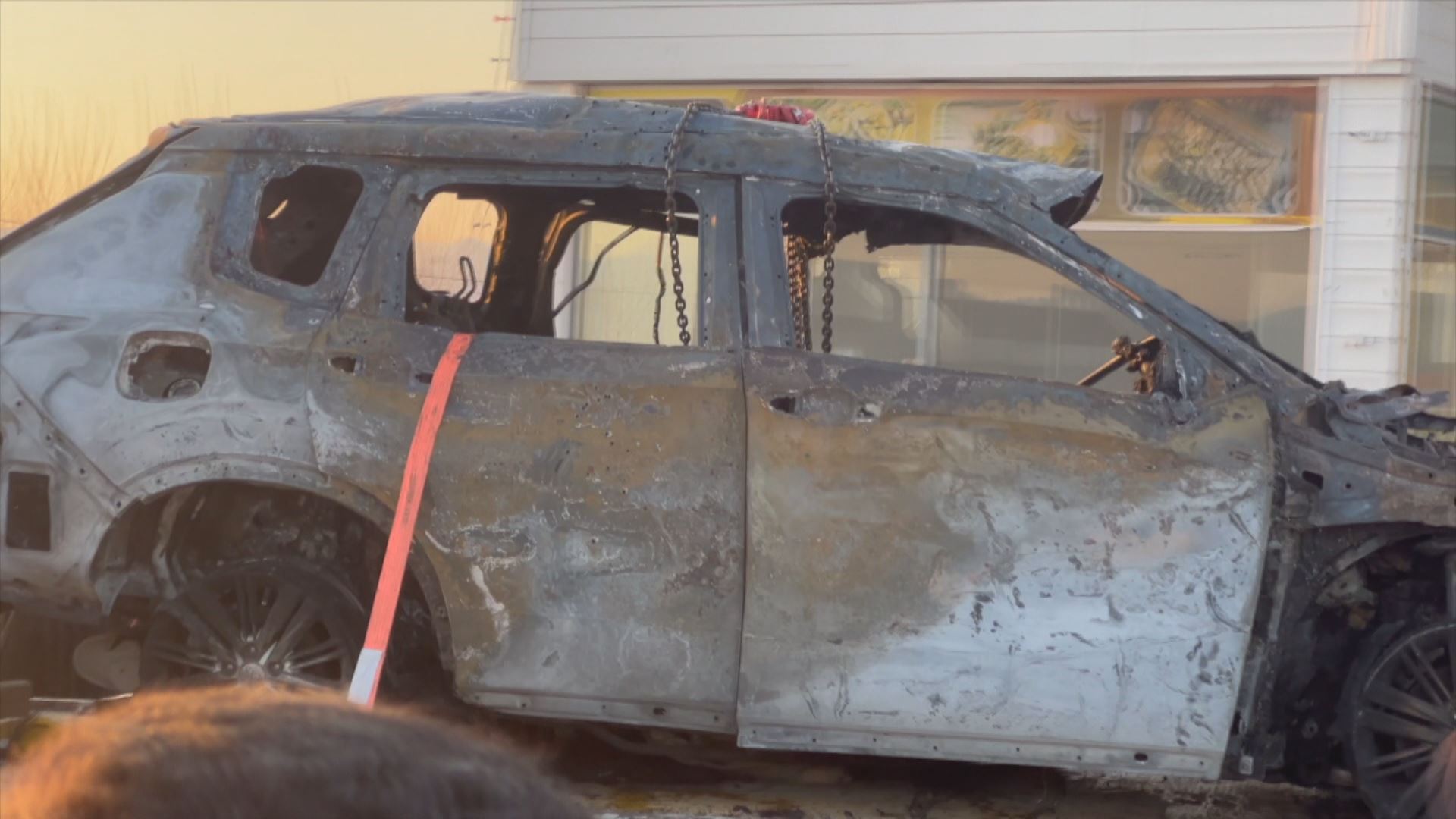 دوو ژن و دوو پیاوی سەرنشینی ئۆتۆمبێلەکە بوون. بەهۆی سووتای و شێواوی جەستەیان تاوەکو ئامادەکردنی ئەم ڤیتییە ناسنامەیان نەزانراوە.