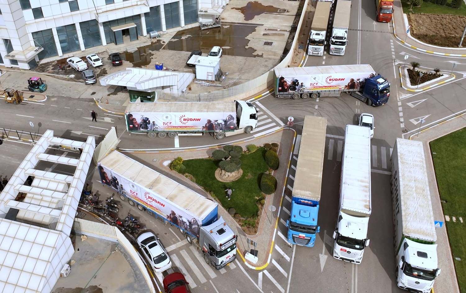 بەڕێکردنی 80 بارهەڵگری هاوکاریی خەڵک و خێرخوازان بۆ هاونیشتمانییان کە لە کەمپەینی 'رەنجی رووداو' بۆ رۆژئاوای کوردستان کۆکرایەوە. وێنە: بڵند تاهیر - رووداو