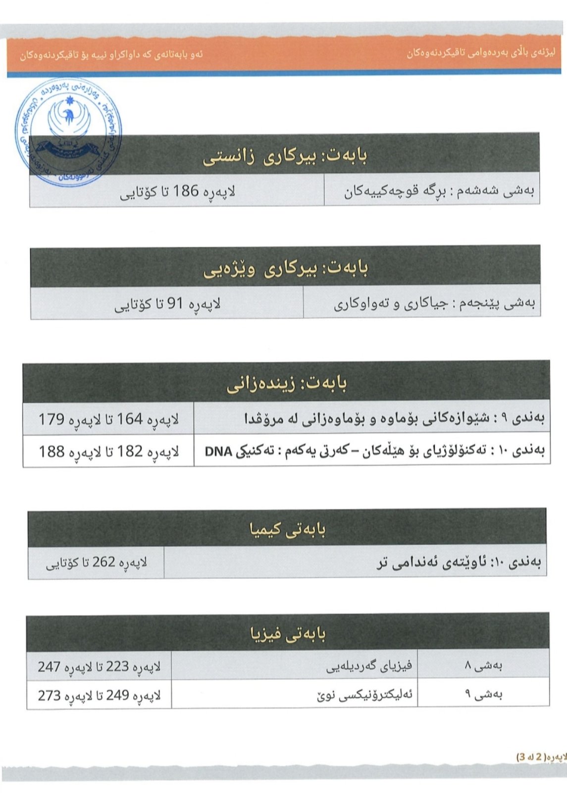 ئەو بابەتانەی لای خوارەوە لە پرۆگرامی خوێندنی 12ـی ئامادەیی (زانستی و وێژەیی) کەمدەکرێنەوە
