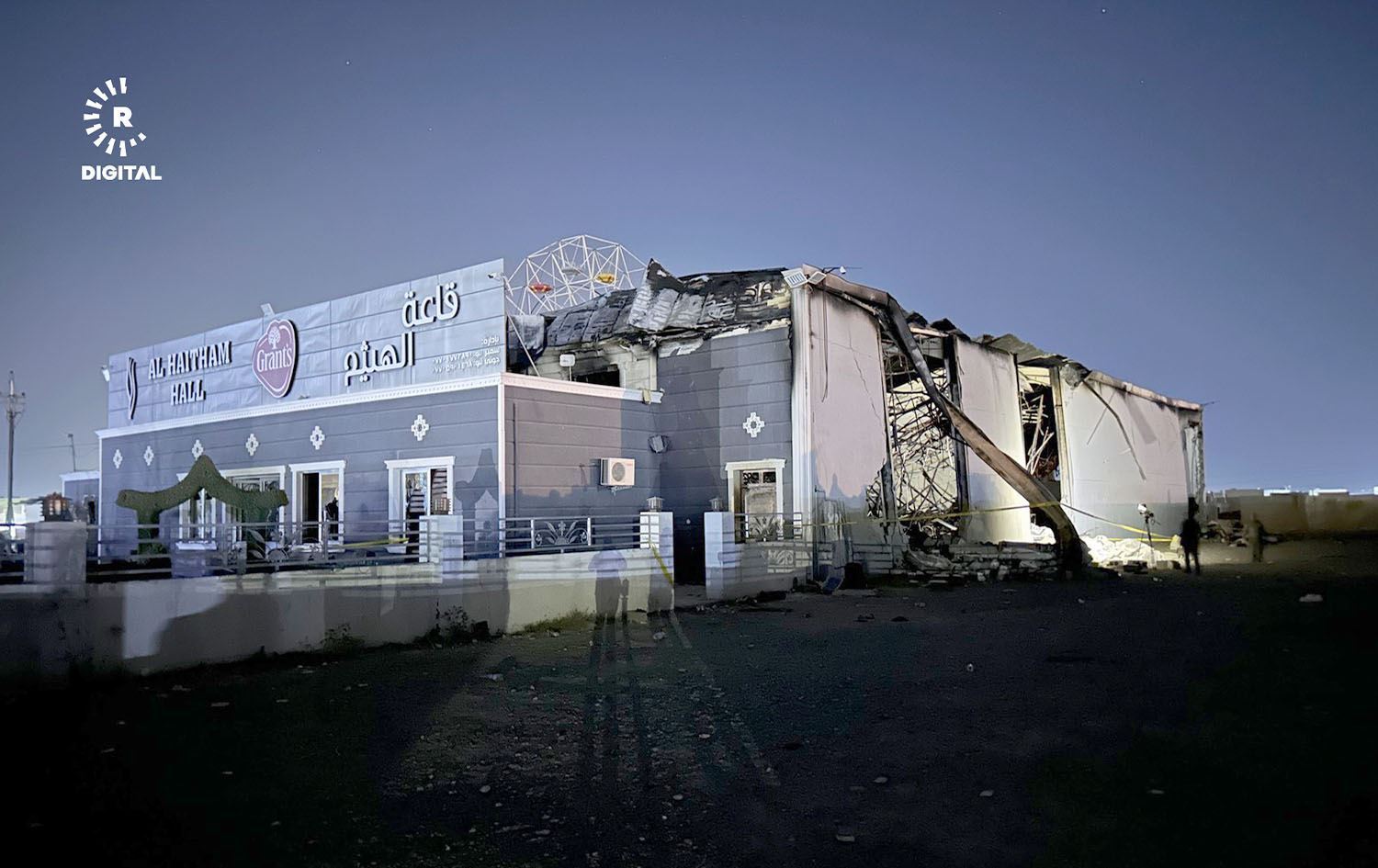 هۆڵی هەیسەم لە حەمدانیە کە شەوی سێشەممە لەکاتی ئاهەنگێکدا گڕیگرت، وێنە: نایف رەمەزان - رووداو