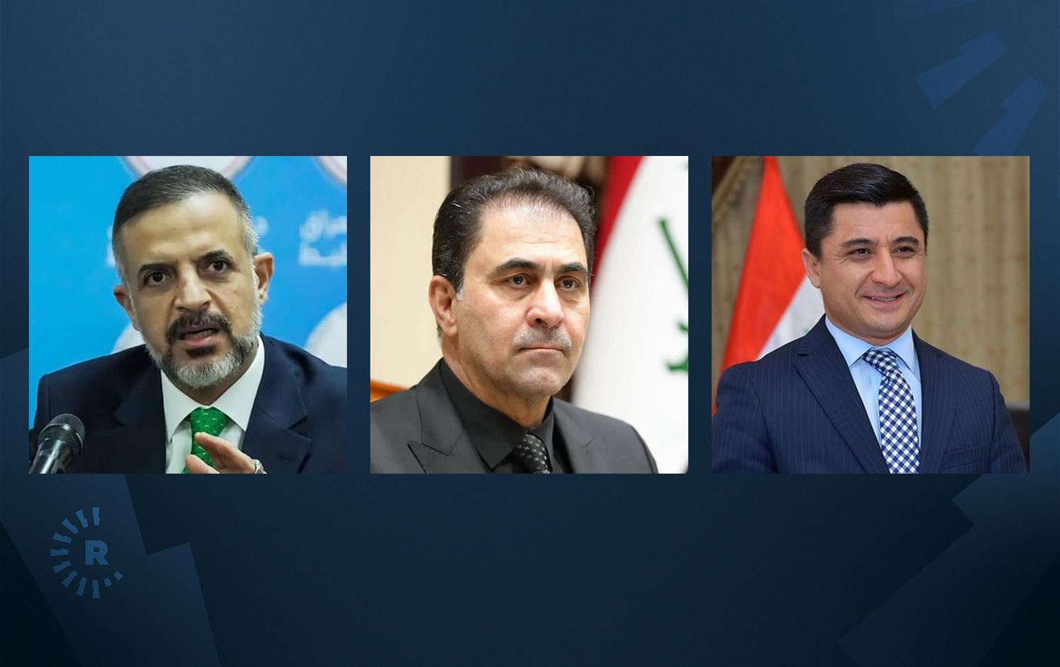 هەریەک لە خالید شوانی، وەزیری دادی عێراق و نوێنەری کورد، محەممەد تەمیم، جێگری سەرۆکوەزیرانی عێراق و نوێنەری سوننەکان و موحسین مەندەلاوی، سەرۆکی کاتیی پەرلەمان و نوێنەری شیعەکان، لە ماڵی موحسین مەندەلاوی لە کۆبوونەوەدان.