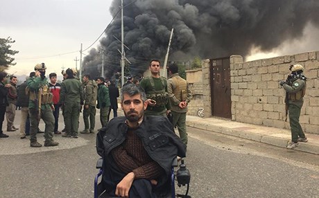 هۆشمەند سەڵاح، ئەو خاوەن پێداویستییە تایبەتەیە كە بەسەر كورسییەوە لە خۆپیشاندانەكانی هەفتەی رابردووی شاری كۆیەدا بەشداری كرد، وێنەكەشی كە لەبەردەم بارەگایەكی سووتاوی یەكگرتوو گیراوە، بەشێوەیەكی بەربڵاو لە تۆڕە كۆمەڵایەتییەكان بڵاوكرایەوە.