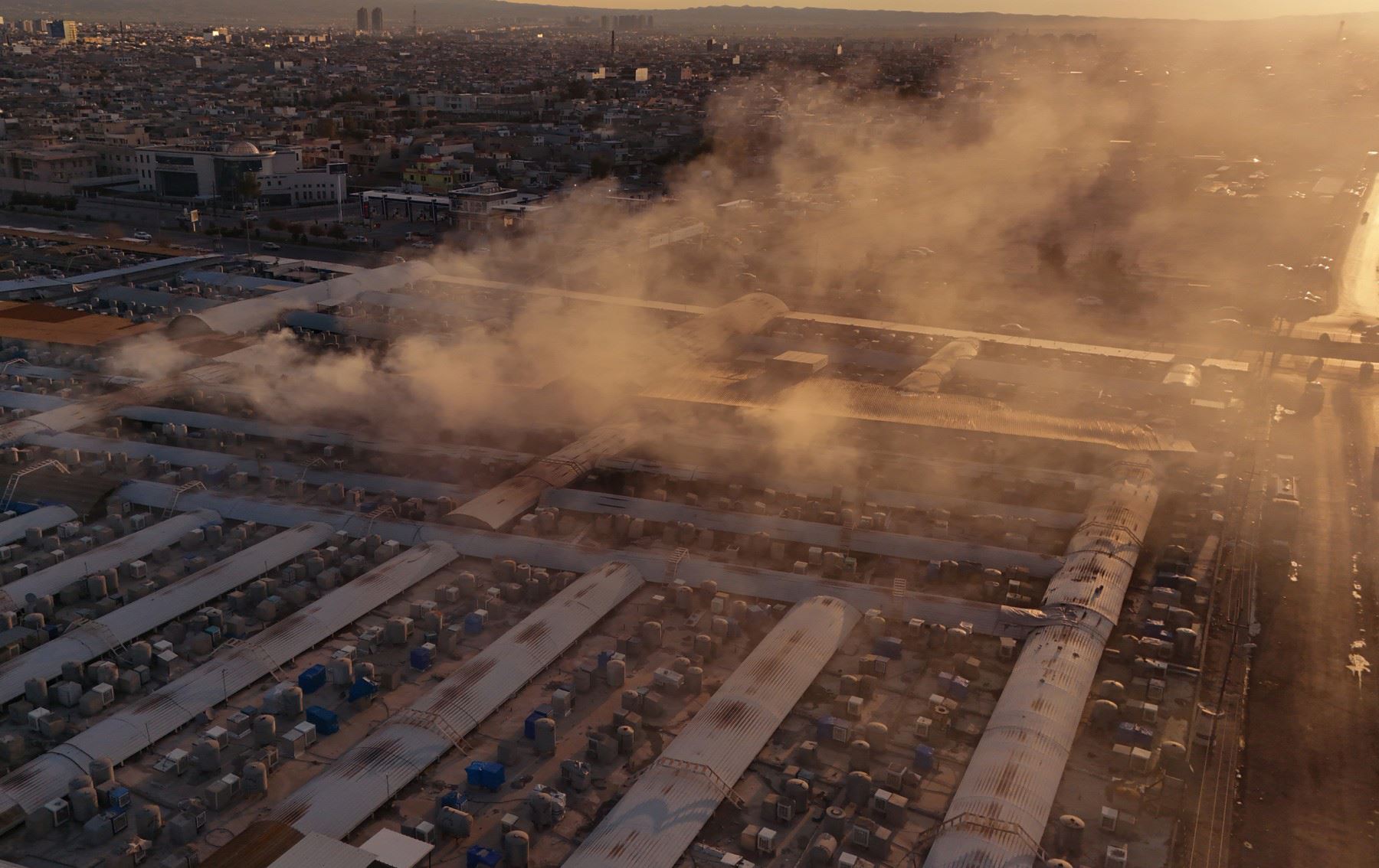 دیمەنی لەنگەی هەولێر لە ئاسمانەوە لە پاش نزیکەی 10 کاژێر لە کۆنترۆڵکردنی ئاگرەکە. وێنە: بڵند تاهیر - رووداو