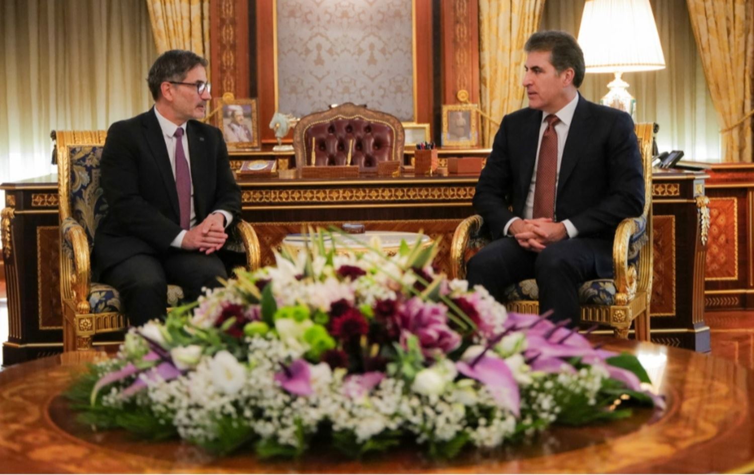 نێچیرڤان بارزانی، سەرۆکی هەرێمی کوردستان و کلیمێنس زێمتنەر، باڵیۆزی یەکێتیی ئەورووپا لە عێراق