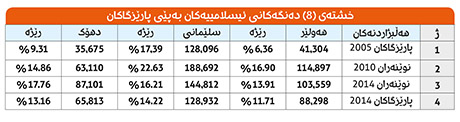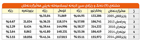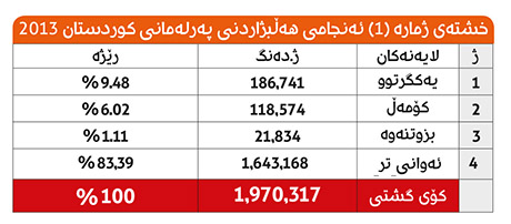 خشتەی ژمارە (1) ئەنجامی هەڵبژاردنی پەرلەمانی كوردستان 2013