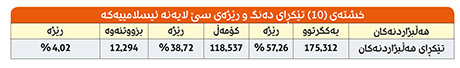واتە لەهەردوو پارێزگای هەولێر و سلێمانی دەنگەكانیان ڕوو لە داكشان بووە و لەدهۆكیش بەپێچەوانەوە ڕوو لەهەڵكشان بووە.