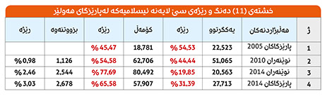 بەراوردی دەنگ و رێژەی ئیسلامییەكان