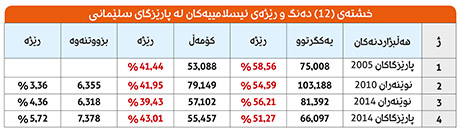 خشتەی (12) دەنگ و رێژەی ئیسلامییەكان لە پارێزگای سلێمانی