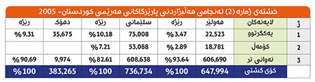 خشتەی ژمارە (2) ئەنجامی هەڵبژاردنی پارێزگاكانی هەرێمی كوردستان- 2005