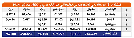 خشتەی (5) هەڵبژاردنی ئەنجوومەنی نوێنەرانی عێراق لە سێ پارێزگای هەرێم- 2014