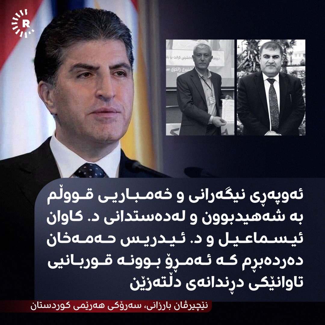 سەرۆکی هەرێمی کوردستان پەیامێکی لەبارەی رووداوی کوژرانی دوو مامۆستاکەی زانکۆی سەلاحەدین بڵاوکردەوە و دەڵێت، "ئەوپەڕی نیگەرانی و خەمباریی قووڵم بە شەهیدبوون و لەدەستدانی د. کاوان ئیسماعیل و د. ئیدریس حەمەخان دەردەبڕم کە ئهمڕۆ بوونە قوربانیی تاوانێکی دڕندانەی دڵتهزێن."