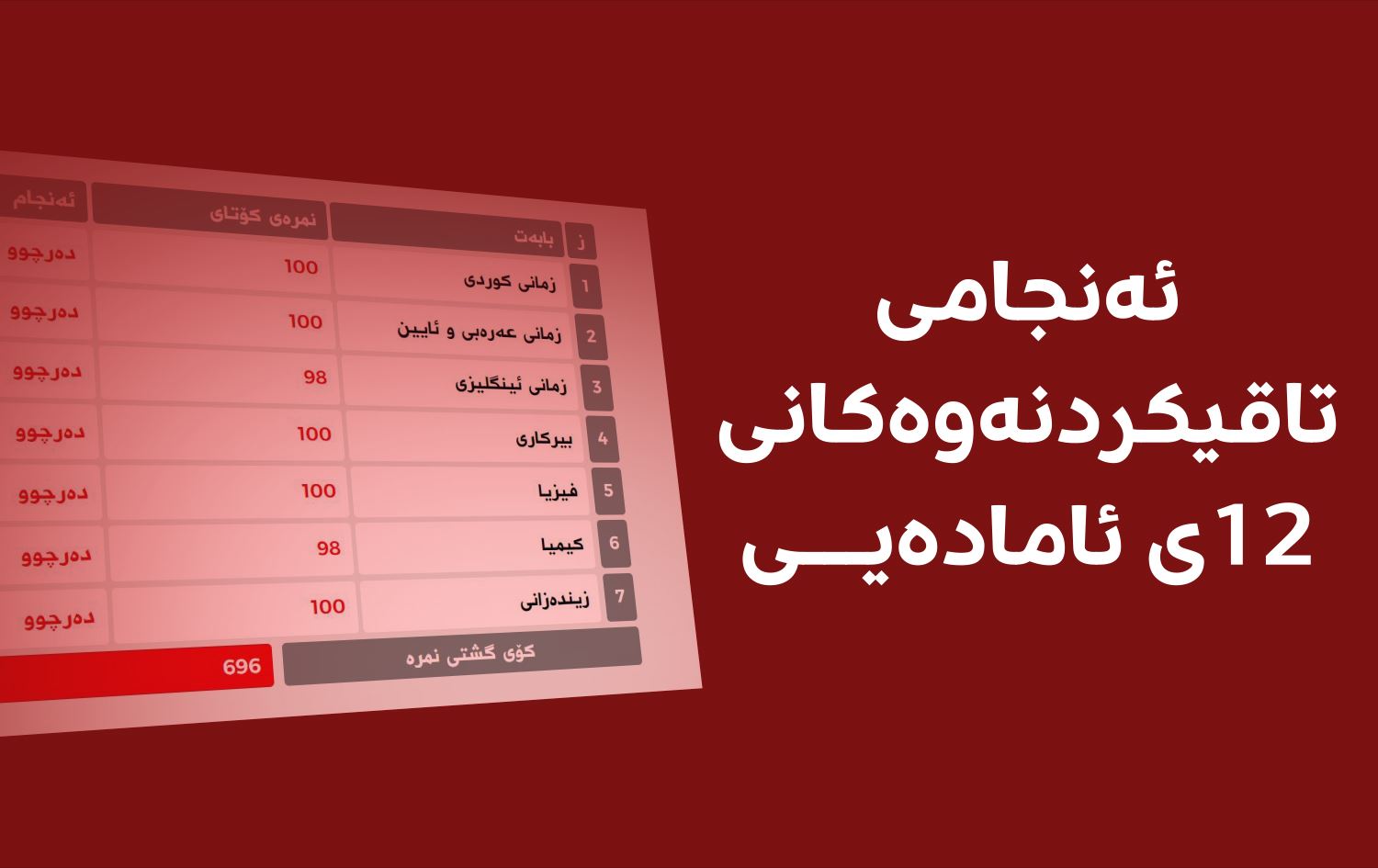 وەزارەتی پەروەردەی هەرێمی کوردستان ئەنجامی تاقیکردنەوەکانی 12ی ئامادەیی راگەیاند و ئێستا قوتابییان دەتوانن لەڕێگەی ئەم لینکە ئەنجامی تاقیکردنەوەکان وەربگرنەوە.