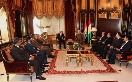 ئەمڕۆ چوارشەممە 28ـ 8ـ 2013 مەسعود بارزانی، سەرۆكی هەرێمی كوردستان، لەگەڵ خوزەیر خوزاعی، جێگری سەرۆك كۆماری عێراقی فیدراڵی و شاندێكی یاوەری لە هاوپەیمانی نیشتیمانیی عێراق كۆبووەوە.